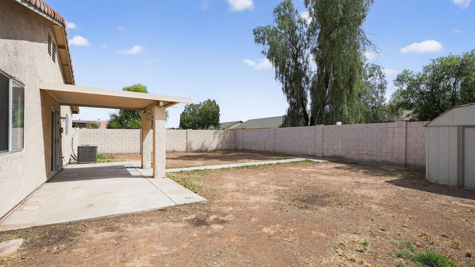 Step into a bright, open great room that flows into a spacious eat-in kitchen featuring a gas stove, pantry, and dishwasher perfect for family meals and weekend gatherings. Ceramic tile throughout offers easy maintenance and a clean, modern look. The primary suite includes a walk-in closet and private bath, while two additional bedrooms provide space for kids, guests, or a home office. Full-size washer/dryer hook-ups add everyday ease. Outside, enjoy a covered patio for outdoor dining, a storage shed for extra gear, and a sprinkler/drip system to keep your yard thriving. The 2-car garage and tile roof add curb appeal and functionality. Located in Glendales Eagle Pass subdivision, this home offers a great blend of value and lifestyle for growing families. Managed by Home365